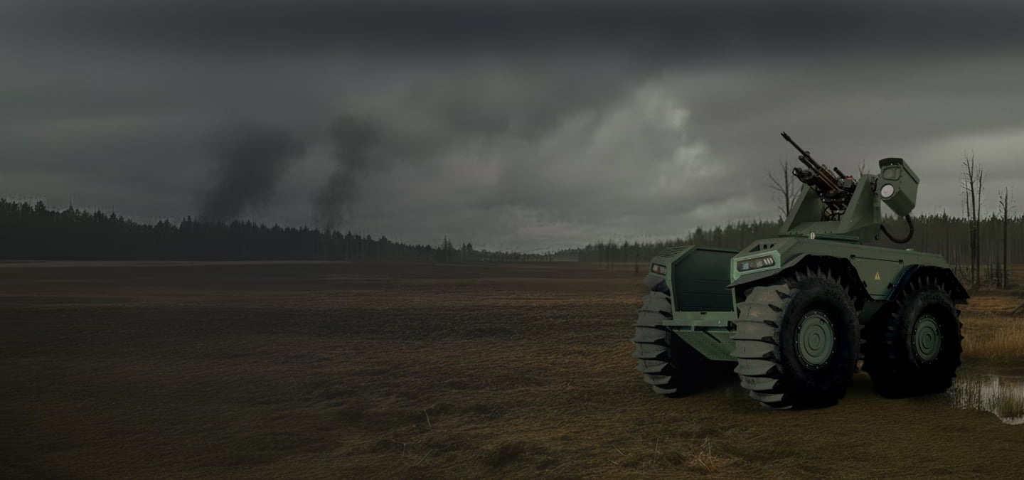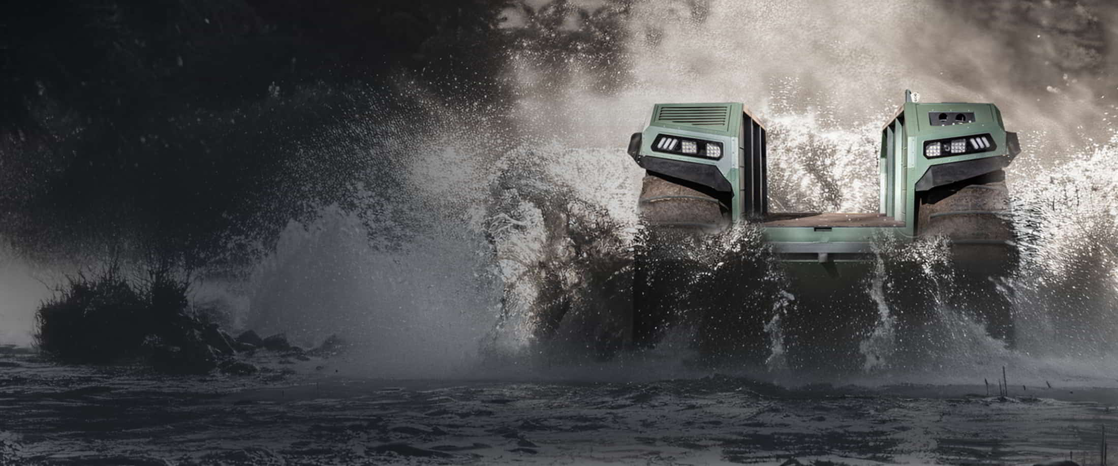 Amphibious all-terrain robotic platform with patented ultra-low-pressure tyres and payload capacity of up to 1,700 kg for demanding military missions.