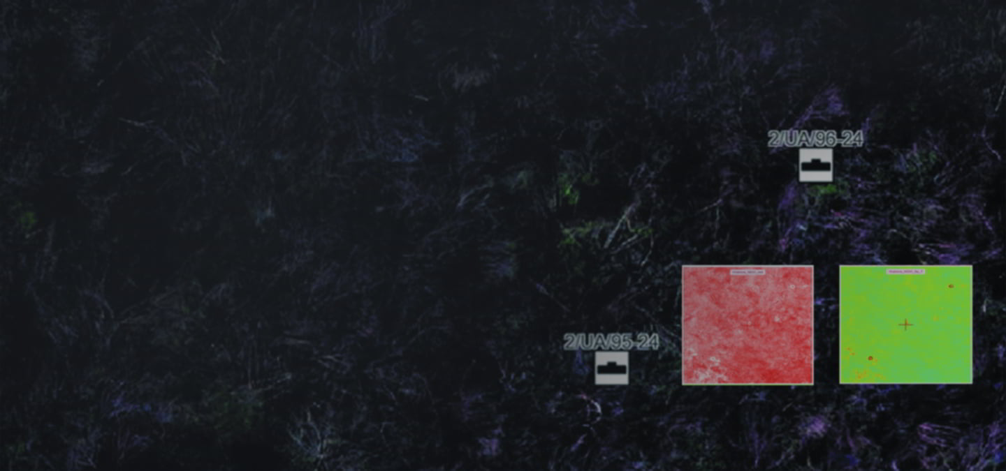Thermal and visual imaging combined with AI analytics (IRIZI Focus) transform aerial data into actionable intelligence for operational planning and battlefield assessment.